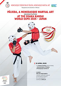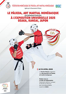 Créé en 2020, par Claude Pouget, ancien officier de police et expert en art martiaux, le Pàijeda – contraction de « Pàije » (paix en monégasque) et de « Defense Art », est un sport de défense et de combat fusionnant traditions martiales ancestrales et techniques modernes. Vecteur de la langue monégasque, Il promeut les valeurs de paix, de respect et d’inclusion à l’instar de celles promues par Monaco, notamment à travers le sport, en harmonie avec les principes de l’Exposition universelle.